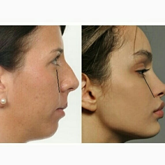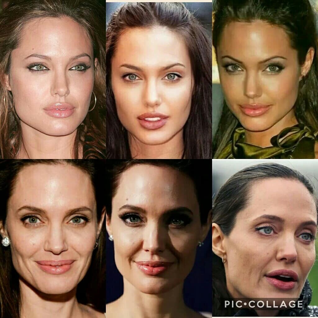 Яркий пример провалившейся максиллы- Анджелина Джоли, и хотя прооперированная нижняя челюсть держит ей чёткий угол молодости - весь центр лица у нее провален вглубь, лицо сузилось, вытянулось вертикально, верхняя губа опустилась и стала тоньше, а глаза ушли вглубь черепа.