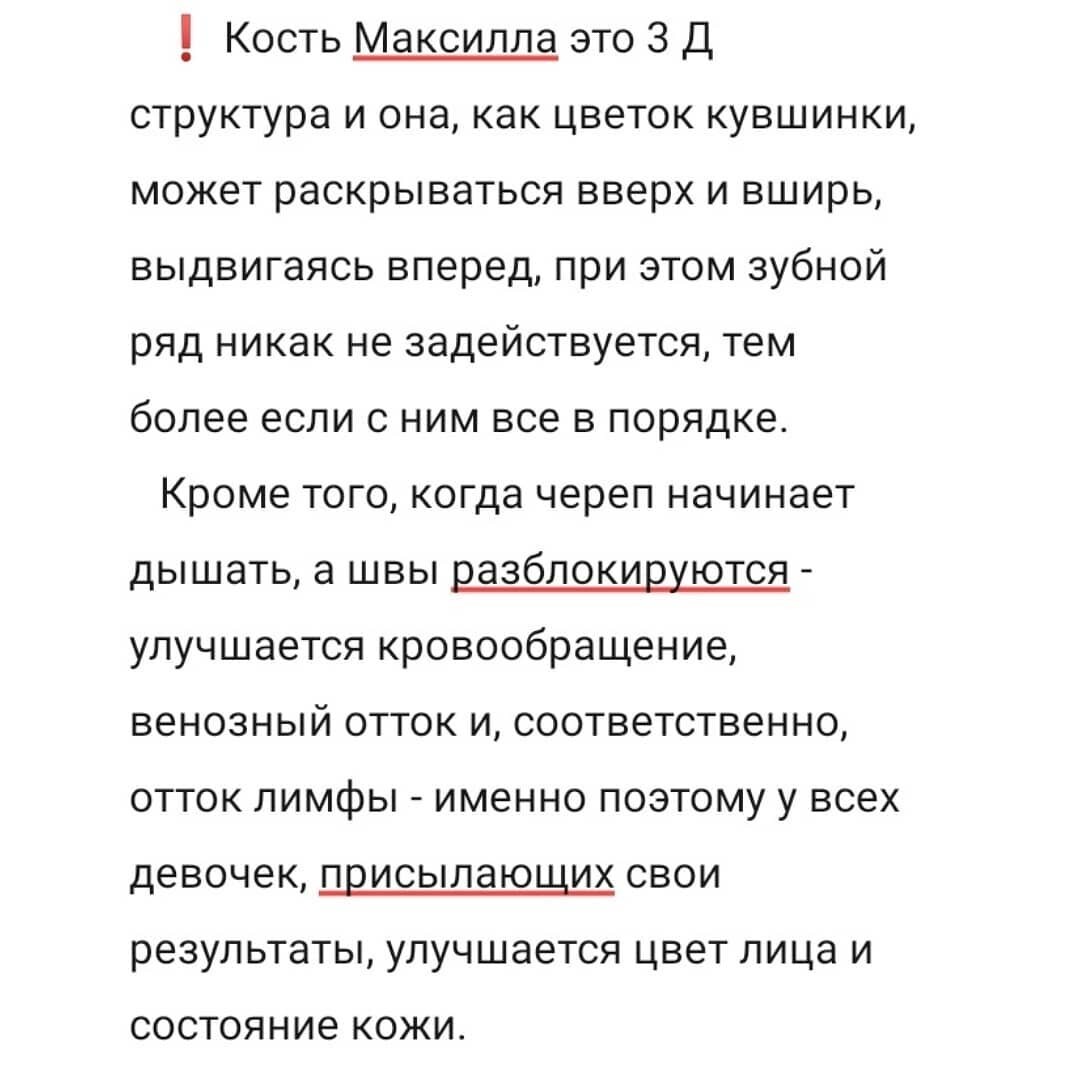 ✔️ Взрослый тип глотания, когда вся сила языка имеет правильный вектор, благотворно воздействующий на вышележащие структуры - небо, сошник, решётчатую кость, клиновидную и далее на все кости черепа и т.д.
