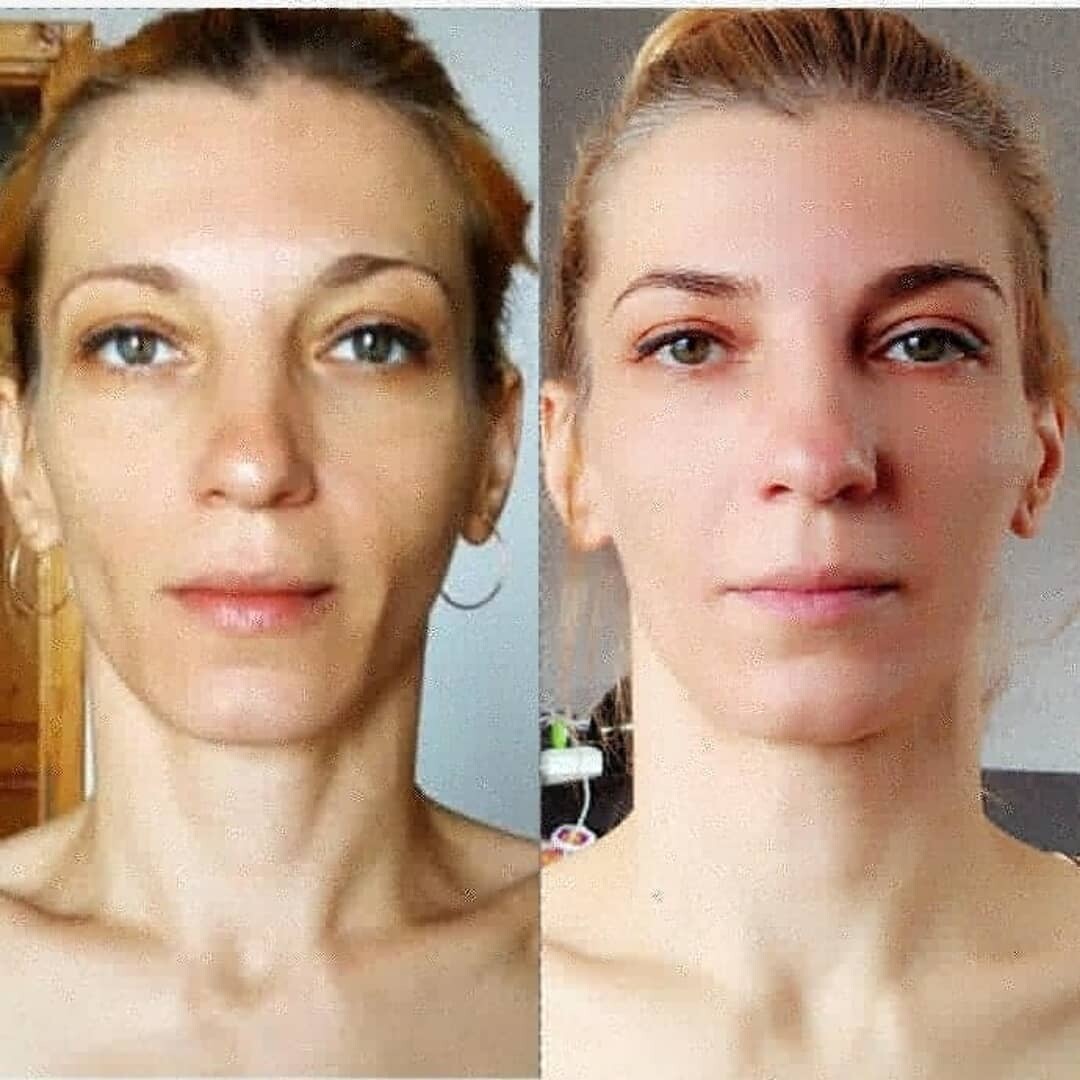 Ну а в качестве иллюстрации сегодня - удачный пример работы 37-летней девушки, которая полгода самостоятельно занимается мьюингом, и поделилась со мной своим прекрасным результатом, лицо очень здорово помолодело