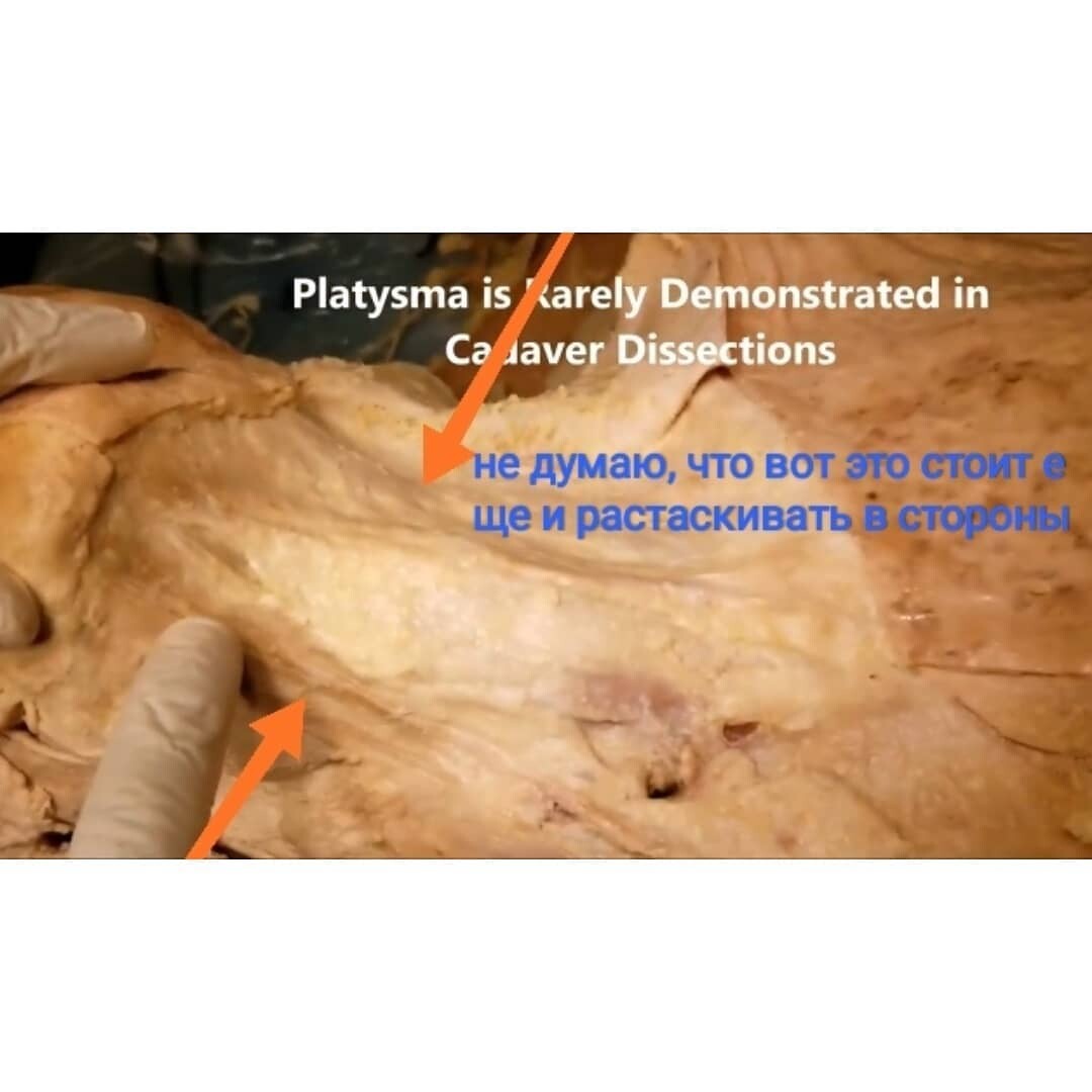 в затылке и, что очень важно, ставя в правильное положение нижнюю челюсть, к которой платизма крепится медиальными волокнами.⠀