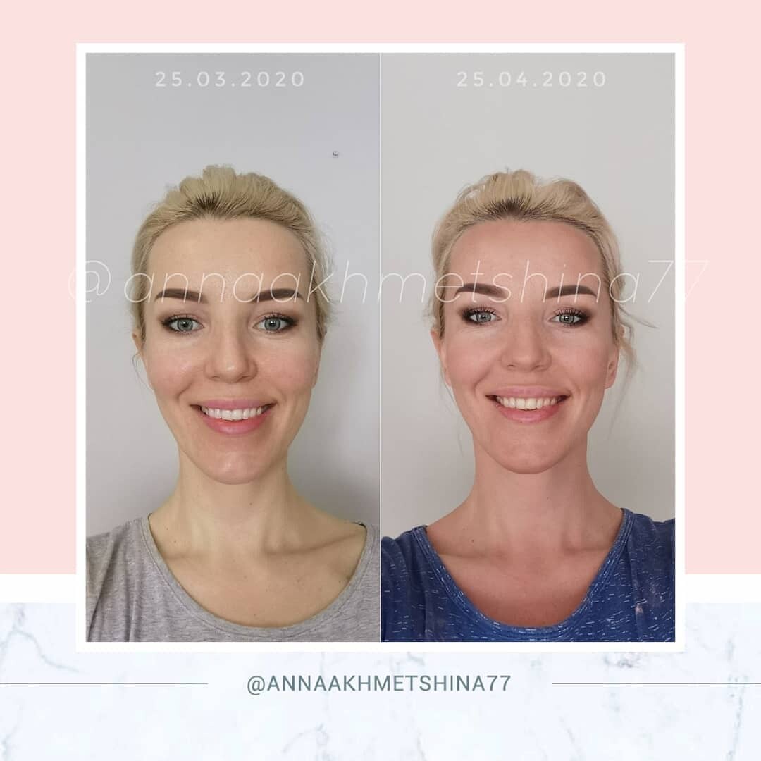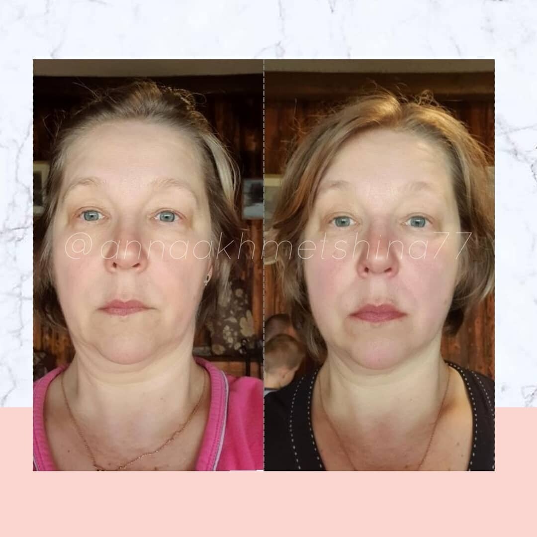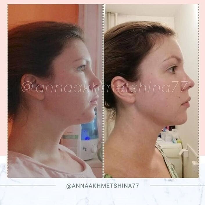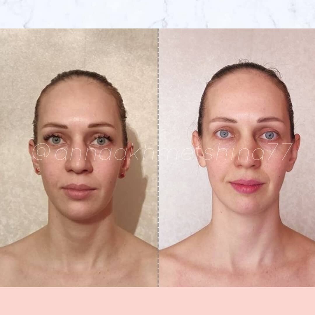 Голова стоит ровнее, шея длиннее, мышцы расслабленнее, засчет этого лицо сразу начинает выглядеть моложе и симметричнее.