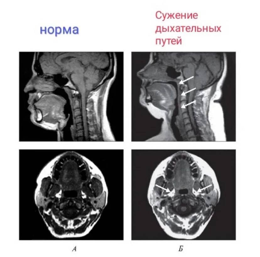 в горизонтальном положении нижняя челюсть дополнительно смещается назад, перекрывая дыхательные пути.