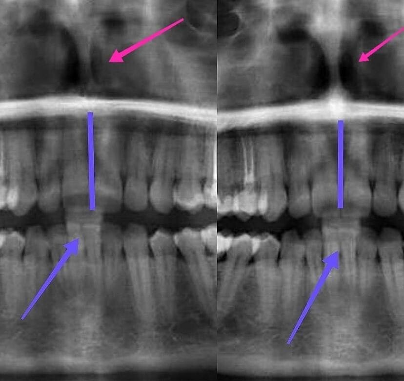 Причем, смотрели на зубы (верхняя челюсть развернулась и встала на место центральная линия), а увидели еще и выравнившуюся перегородку!)