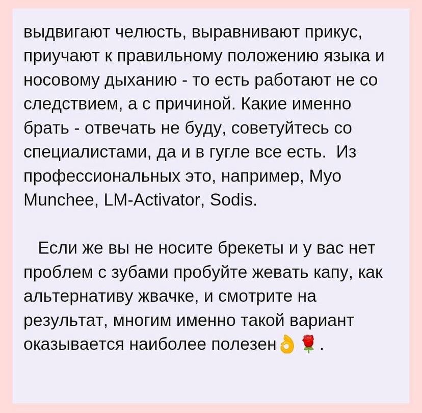 И выбирайте капу помягче, правильнее приобрести специально для этого созданные трейнеры, которые правильно развивают мышцы лица.