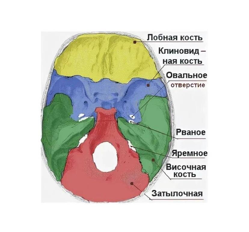 Далее происходит смещение затылочной кости, которая граничит с височными и клиновидной костями, и весь этот карточный домик начинает складываться. Между тем на стыке этих костей находятся парные рваные отверстия черепа, через которые в череп выходят сонные артерии...