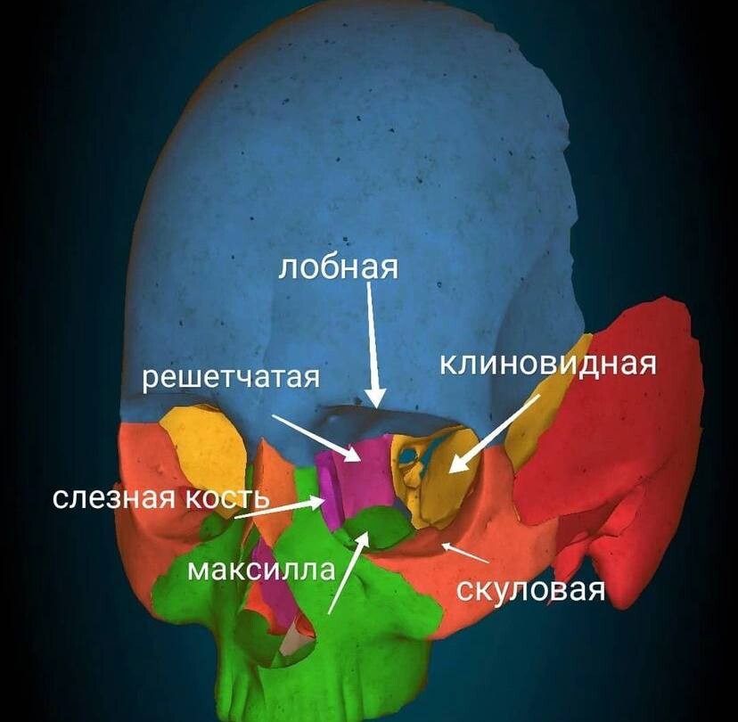 Клиновидная кость является центральной костью черепа, которая соединяется швами со всеми основными костями черепа, а ее соединение с затылочной костью (сфенобазилярный синхондроз) определяет лицевые асимметрии.