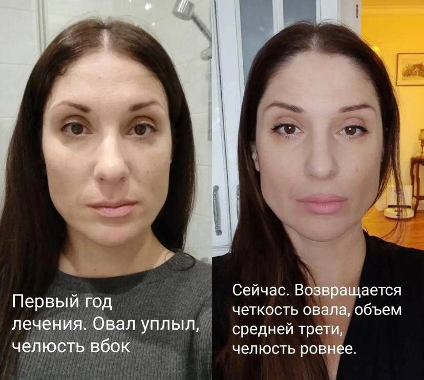 В результате потери выпуклого костного объема лицо просто обвисло, появилась никогда не свойственная мне отечность (пережаты пути оттока смещением костей), ухудшился тургор тканей (пережаты нервы).