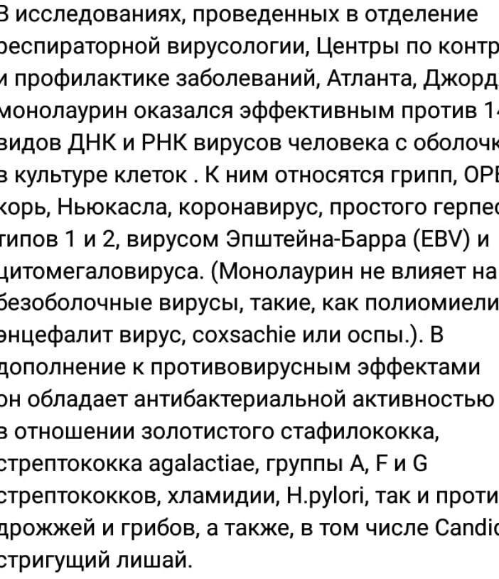Исследования показали, что он способен оказывать мощнейшую поддержку иммунной системе, обладает противовирусным, антибактериальным, противомикробным, противогрибковым и противопаразитарным действием.