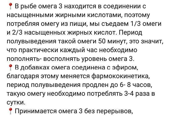 🔺Желательно разбивать прием омеги на 2-4 раза, потому что она быстро расходуется и уже через 8 часов выводится из организма.