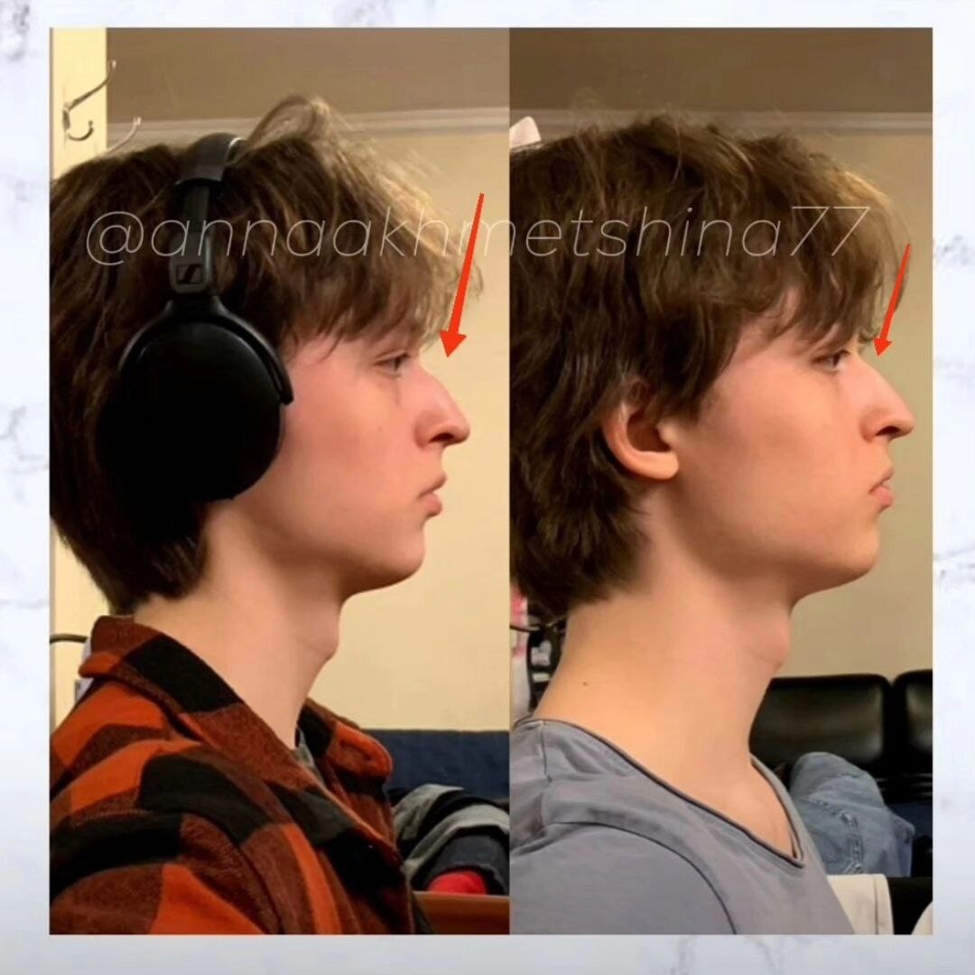 Именно поэтому при выравнивании ротации верхней челюсти нос тоже будет вставать ровнее, это логично.