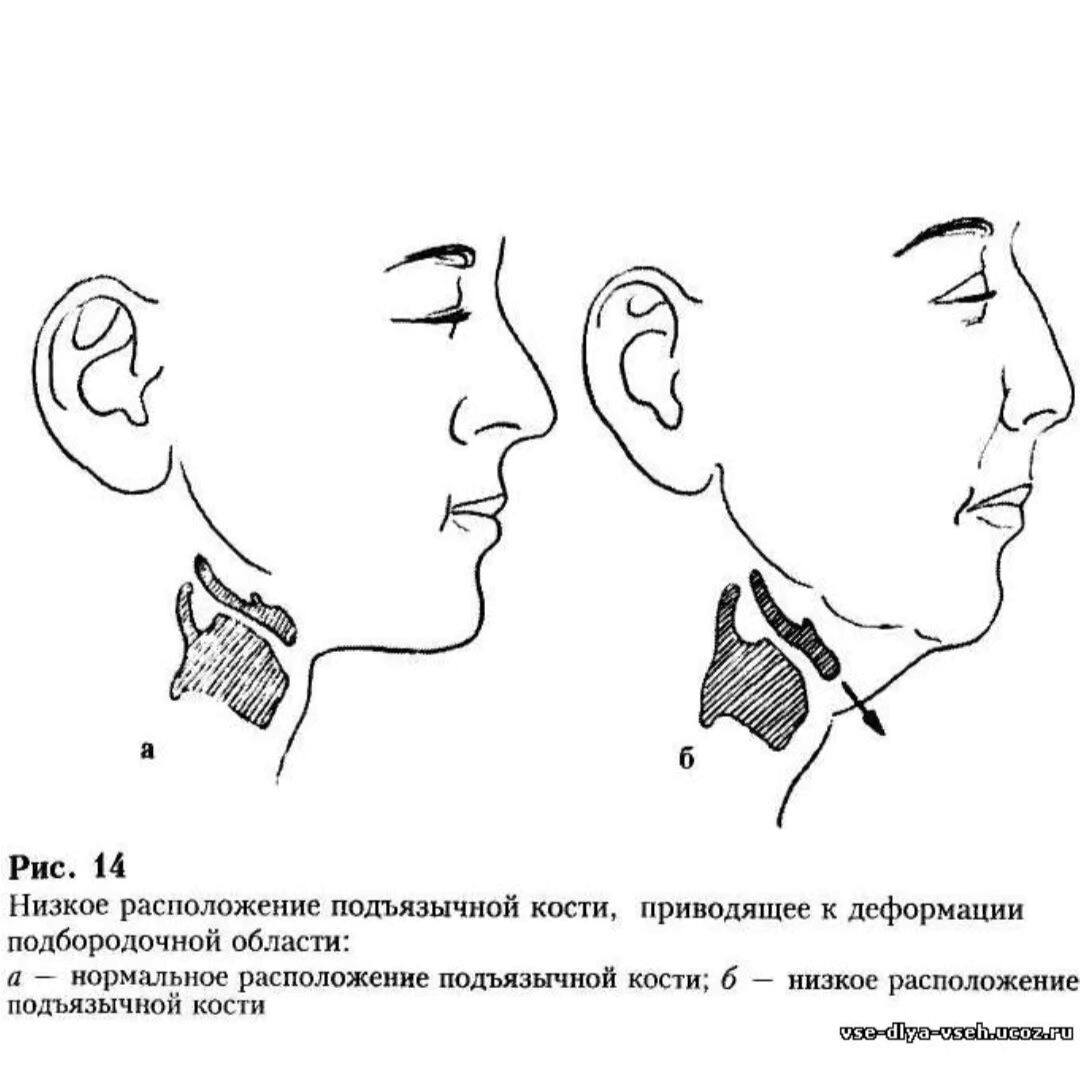 Попалось видео пластического хирурга относительно платизмопластики, где он разводит руками, дескать, далеко не у всех после операции получится челюсть Джоли из-за анатомически разного положения подъязычной кости.