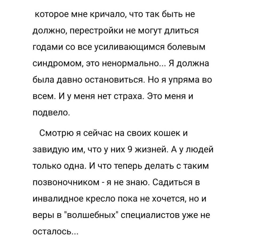 Вы знаете историю моего лечения (#моёлечение_аа), в последнем посте я писала, что на сегодняшний день из этого не вышло ничего хорошего, и все, что по идее должно было улучшиться - не просто не получилось, но и напротив: теперь я имею кучу проблем от постоянной сильной боли в позвоночнике до падения зрения и выпадения волос.