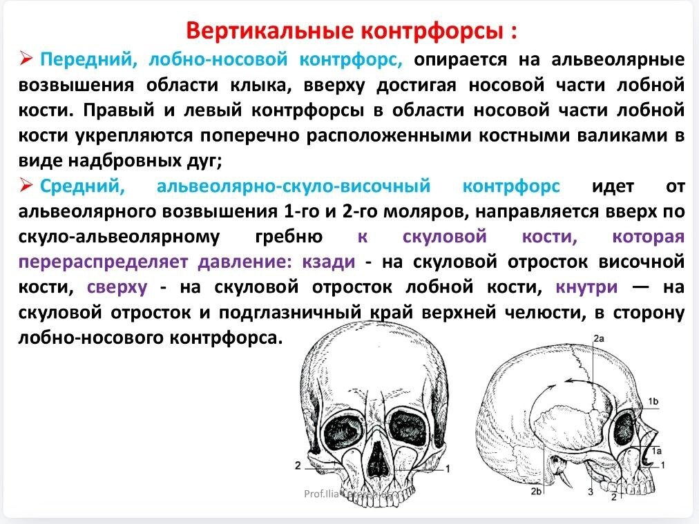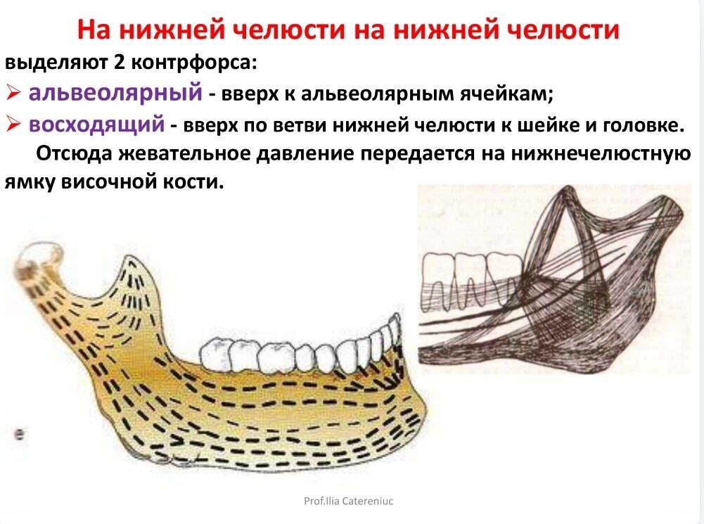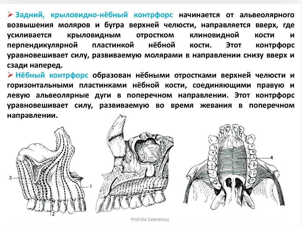 по которым давление языка и жевательное давление передаются на кости лицевого и мозгового черепа. Основная функция контрфорсов - распределять и выравнивать это давление, оказываемое на свод черепа.