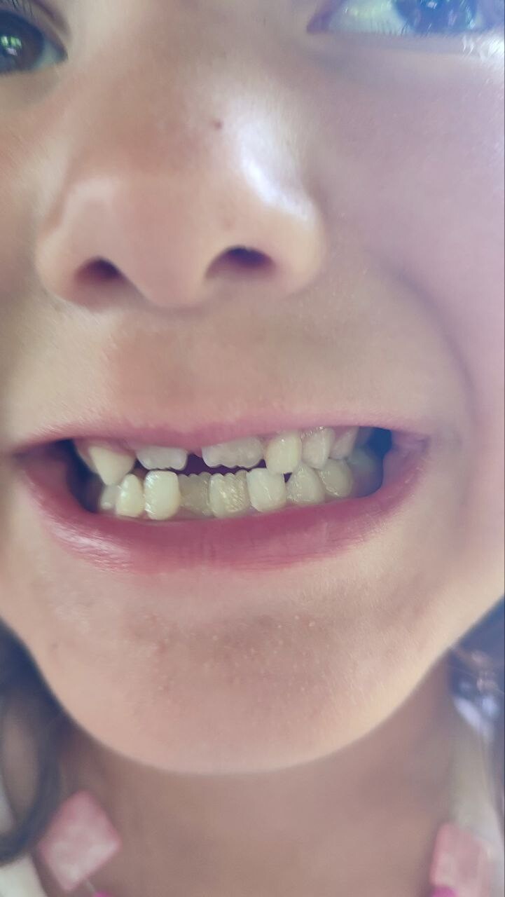 В данном случае ребёнку ставили пластину Марко Росса, после появления места и прорезывания двоек - пластину сняли и приучили ребенка держать язык. На момент снятия скученность внизу еще была заметной, но спустя год нижний ряд тоже расширился под верхний без дополнительных манипуляций.