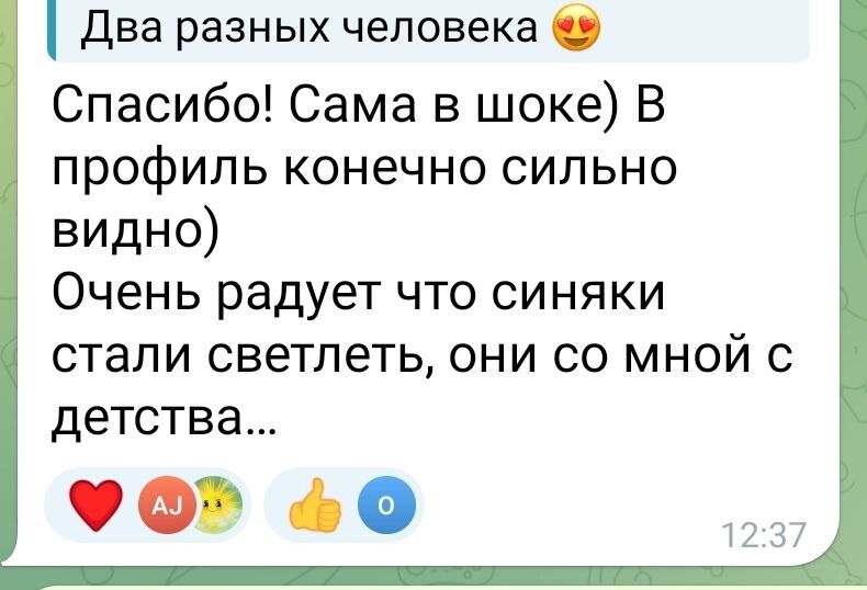 Помимо того, что пишет сама Маша (круги под глазами посветлели) я еще вижу, что даже визуально заметно, что ушло давление с глазных яблок, это очень хороший "звоночек", возможно, будет улучшаться и зрение.