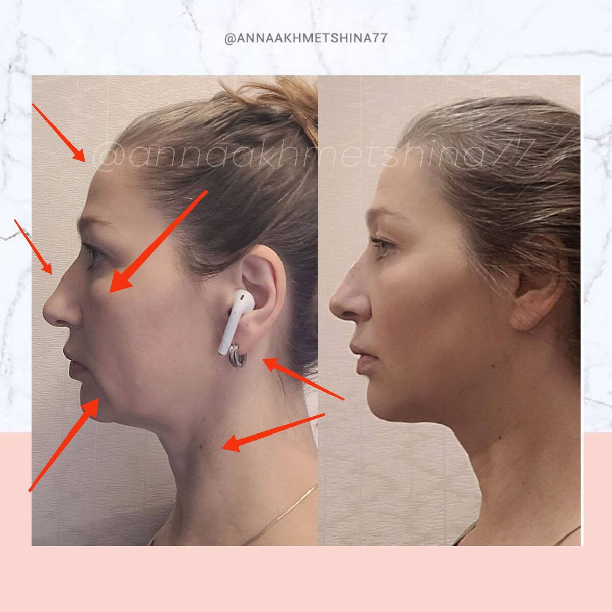 На третьем слайде обозначила стрелочками, где произошли изменения: очень подтянулся овал, ушла брылька, выдвинулась вперед верхняя челюсть, изменилась форма лба, уха, нос ровнее, шея расслабленнее.