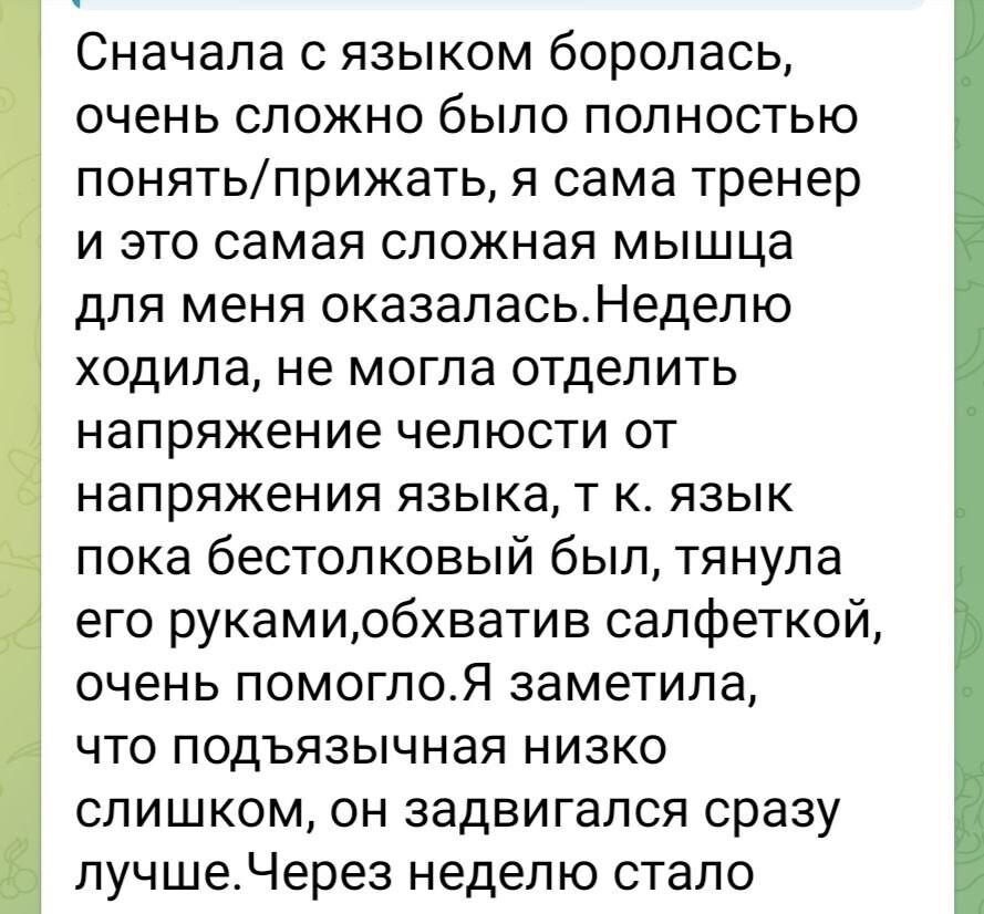 На курсе я ежедневно получаю от вас обратную связь, и, имея опыт общения уже более чем с тысячей человек, все сильнее убеждаюсь, что классический мьюинг (правильное положение языка и правильное глотание) - это однозначно подходит не всем, почему расскажу.