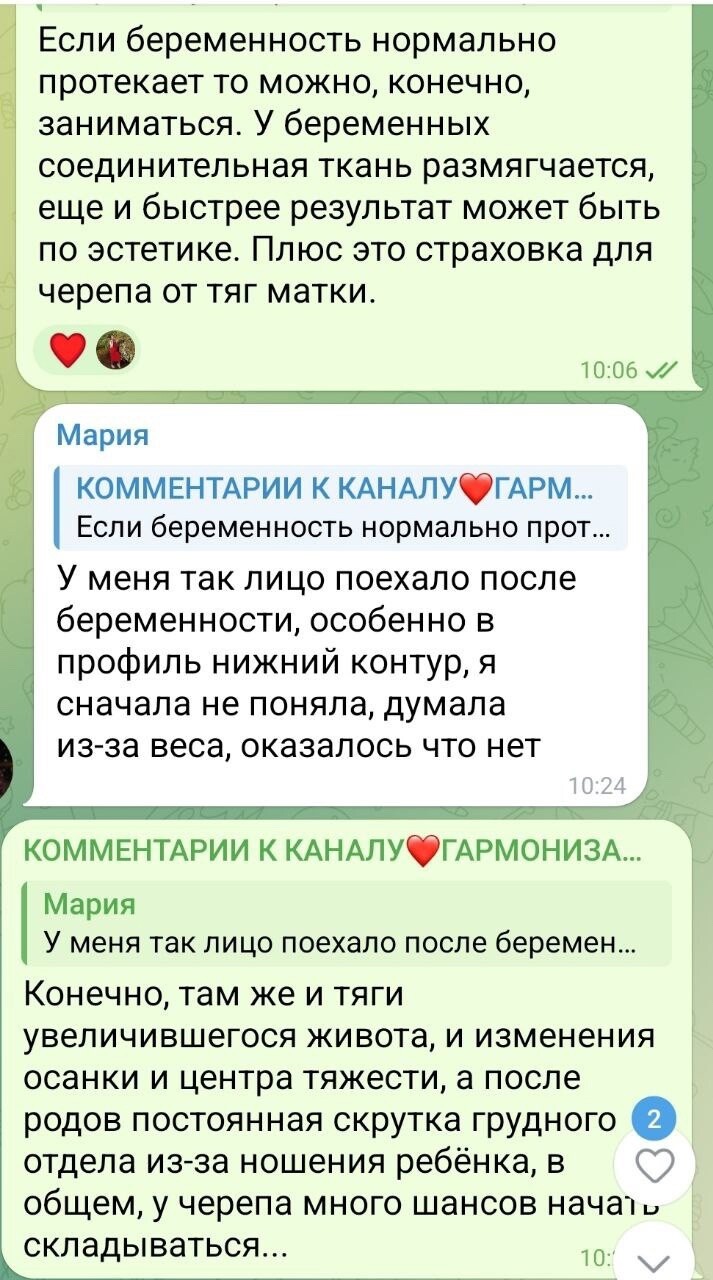 В чате зашла речь про влияние беременности на череп, и Мария прислала свои фото после беременности и сейчас, когда стала держать язык и череп фундаментально улучшился).