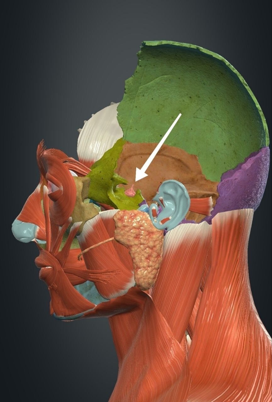 Клиновидная кость сочленяется с затылочной, лобной, решётчатой, небными, скуловыми, теменными и височными костями, т.о. посредством остеопатической работы с черепом, мьюинга и пальцевых техник мы опосредованно влияем на клиновидную кость.