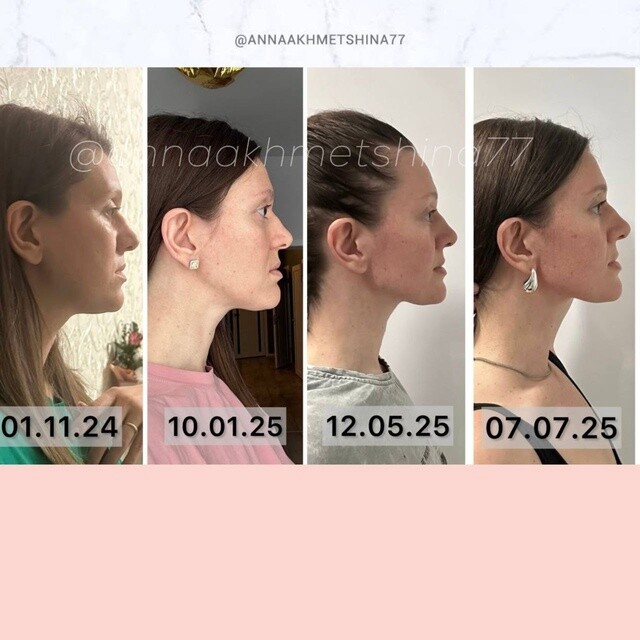 В анфас лицо прямо расцвело, шире, объемненее, подтянутее, симметричнее, подбородок встал ровно, лицо расслабилось и "повеселело" (за это у нас отвечает положение глазниц, височных костей и скул)👌