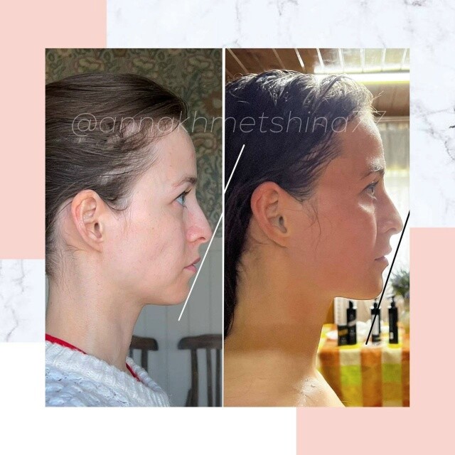 Ну а в профиль вообще все очевидно: нижняя челюсть выходит вперед, развернулись и расправились уши, поднялось под глазами, на правом профиле заметно, что ушел провал щеки. Будто воздушный шарик изнутри надули!) 🔥