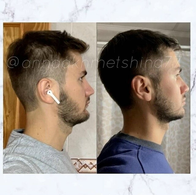 И кстати, чисто визуальное снижение высоты нижней трети, когда подбородок поджимается вверх, это далеко не всегда вообще про зубы, это и про взаиморасположение челюстей, в частности, про задвинутую кзади нижнюю челюсть.