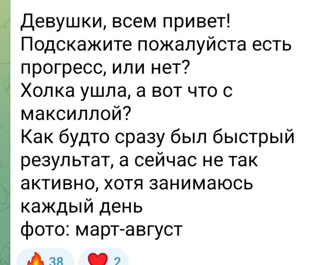 По фото видно, что лицо стало ширеи объемнее, овал четче, наполняется под глазами, уменьшилась носогубка, приподнялась верхняя губа.