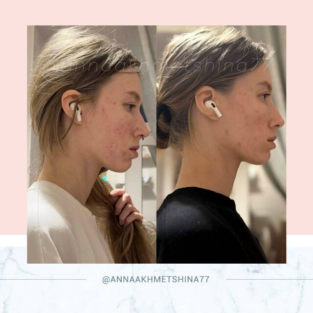Настя пока сетует на анфас, что он не так быстро улучшается (правда фото до и после не прислала😅), но мы поверим на слово и успокоим, что 2 недели это вообще не срок, а во-вторых всегда так: где-то изменения могут идти быстро, где-то постепенно, это нормально 👌
