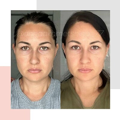 А в анфас лицо заметно разгладилось, лоб перестал падать на нос, расширилась переносица, носослезка стала менее резкой, это вышла вперед и вверх максилла, с глазниц явно ушла компрессия, подтянулись линия нижней челюсти, посвежела кожа (улучшилось кровообращение и лимфодренаж), уменьшились кольца Венеры👌