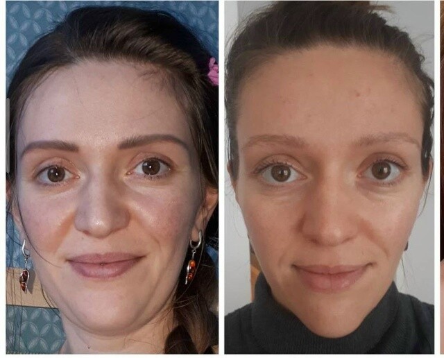 Во-первых, лицо стало ровнее, более нежным, сердечком, шире в висках, ушла массивность подбородка.