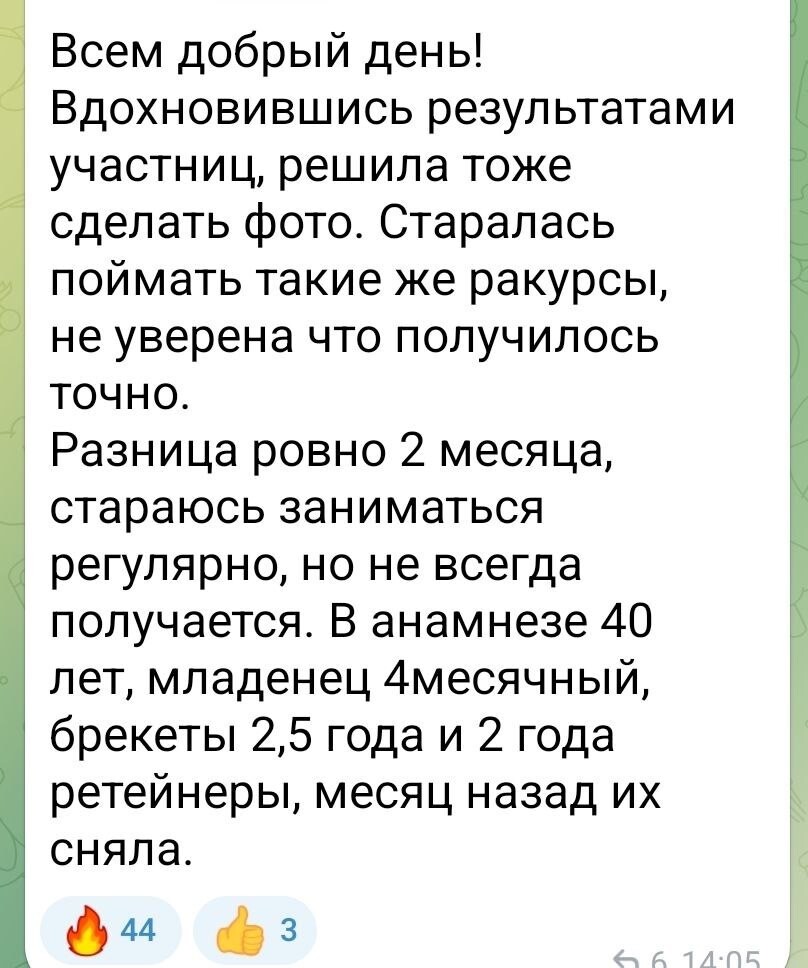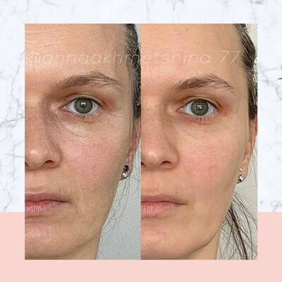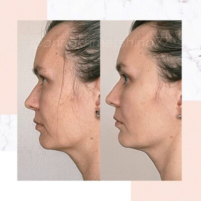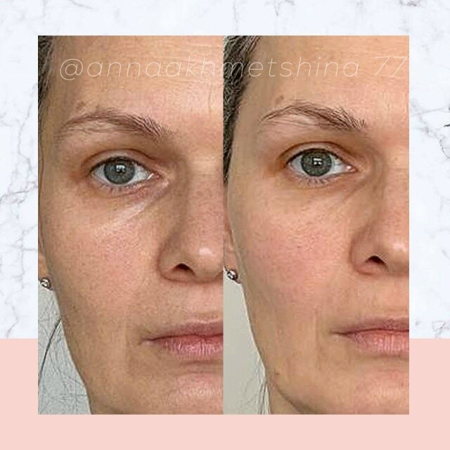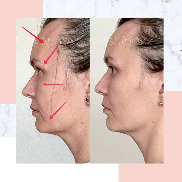 Ушли провалы щек, височных костей, разгладилась носослезка за счет выдвижения максилл вперед, приподнялись уголки глаз, да и в целом улучшился цвет лица, сгладился тон кожи👏😍