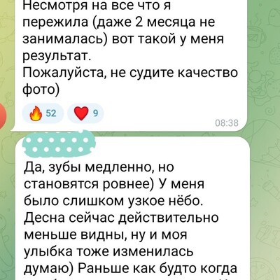По зубам очевидно расширение и скругление арки, изменение наклона верхней челюсти, ушла десневая улыбка, выравнивается смещённая центральная линия, закрылись щечные коридоры.